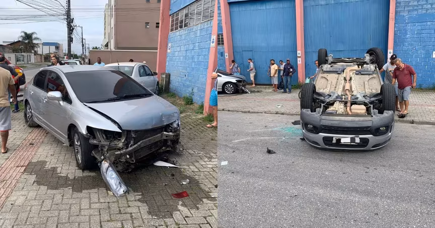 Gestante é levada para hospital após capotamento em acidente com três carros em Itajaí 01/10/2024 • Vitor Souza