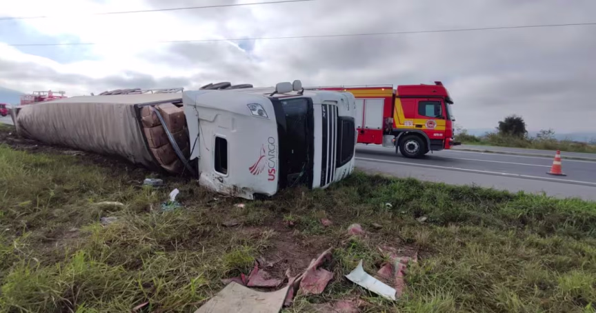 Carreta tomba em pista sentido SC na BR-376; acidente gerou dez quilômetros de fila 25/07/2023 • Redação O Município