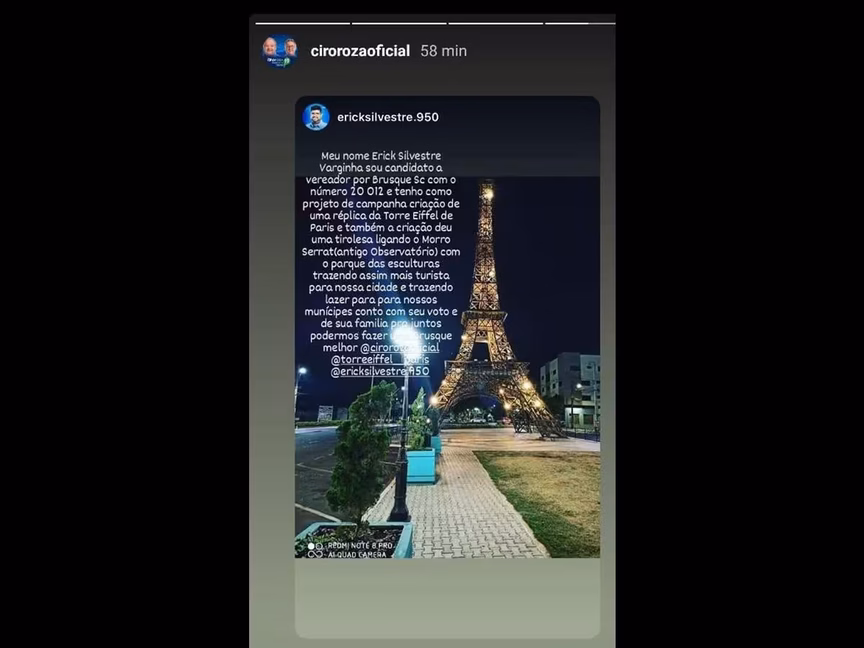 Candidato a vereador propõe criação de réplica da torre Eiffel em Brusque