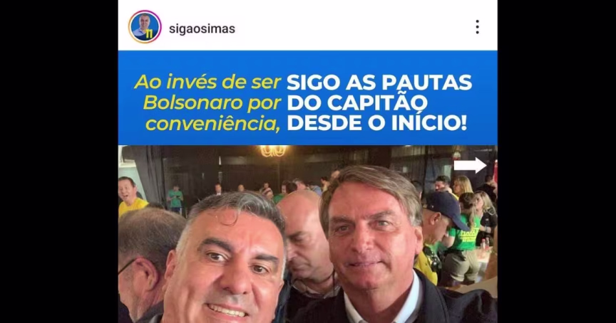 Simas posta foto antiga com Bolsonaro e alfineta concorrente