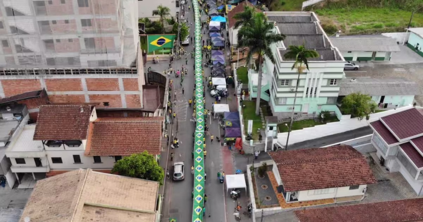 VÍDEO – Manifestantes de Brusque criam tecido com 160 metros de bandeiras do Brasil 13/11/2022 • Redação O Município