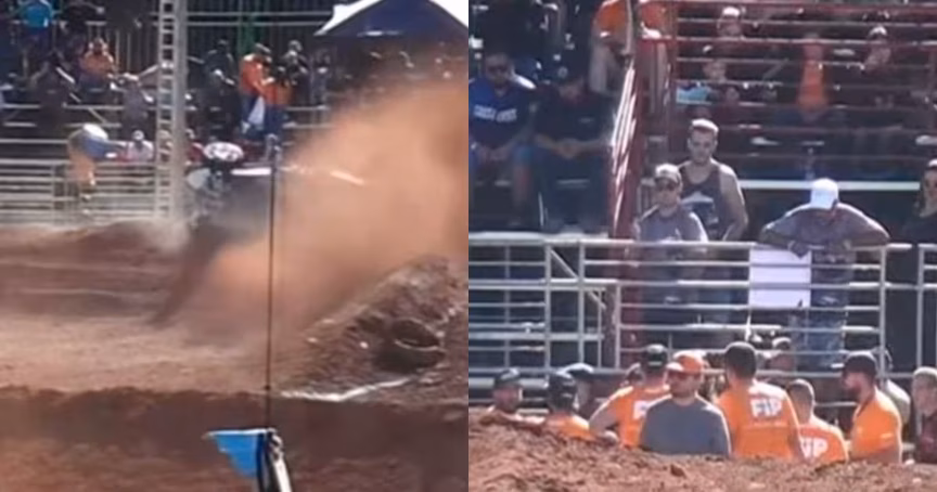 Como homenagem, piloto carrega bandeira do Rio Grande do Sul durante corrida de Gaiola Cross na Fenajeep 02/06/2024 • Vitor Souza