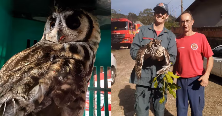 VÍDEO – Bombeiros resgatam coruja presa em linha de pipa em Florianópolis