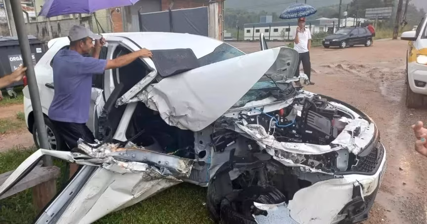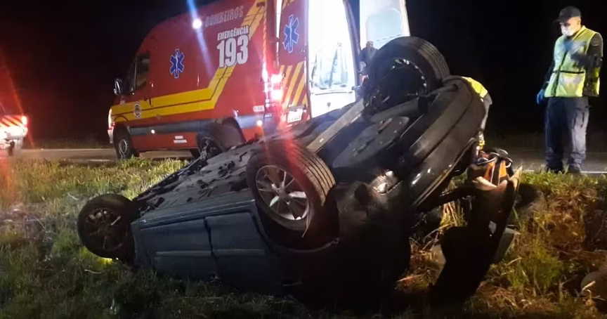 Carro tomba após ser atingido durante ultrapassagem na SC-108, em Brusque 05/02/2023 • Redação O Município