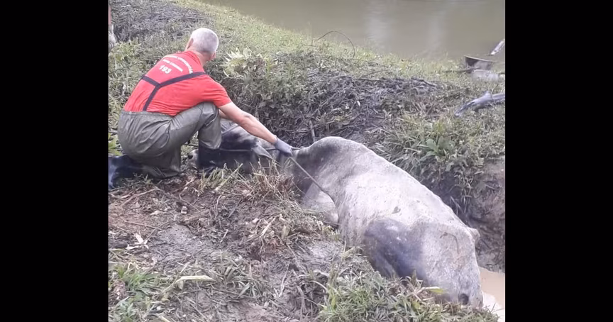 Vaca fica atolada por 18 horas e é resgatada pelo Corpo de Bombeiros em Gaspar 17/01/2023 • Eliz Haacke