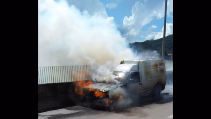 Veículo que transportava alimentos pega fogo em cima de ponte em Gaspar 18/02/2022 • Redação O Município