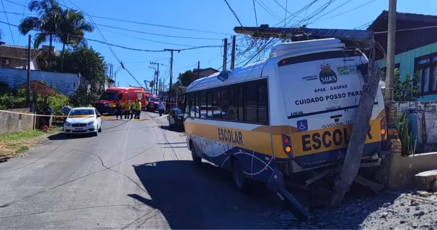 Pane mecânica faz micro-ônibus colidir contra carro, muros e poste em Gaspar 13/08/2025 • Redação O Município