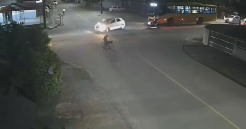 VÍDEO – Cadeirante é atropelado ao tentar atravessar rua no Norte de SC