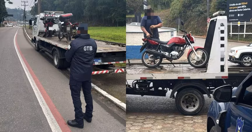 Motos são apreendidas em ação da Guarda de Trânsito no bairro Primeiro de Maio, em Brusque 24/07/2025 • Redação O Município
