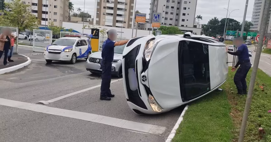 VÍDEO – Carro tomba no Centro de Brusque na manhã desta terça-feira
