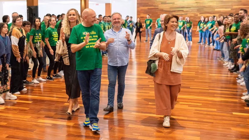 Apresentador Ciro Bottini realiza palestra sobre vendas para colaboradores da Havan, em Brusque