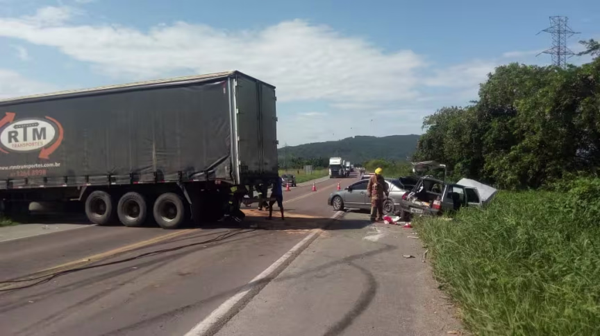 Acidente envolvendo carreta e dois carros interdita BR-470, em Ilhota 03/02/2020 • Redação O Município