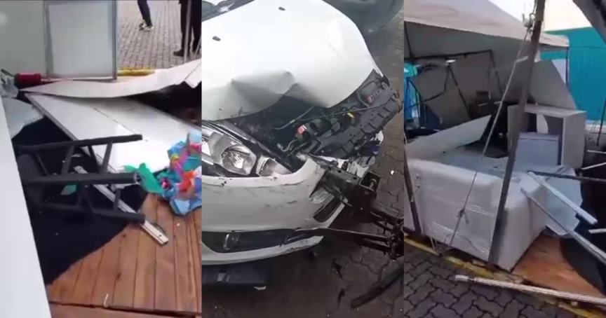 VÍDEO – Carro invade praça, pessoas são atropeladas e estrutura de festa é danificada em Itapema