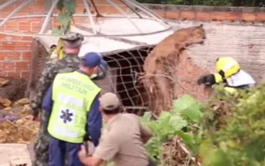VÍDEO: Polícia e bombeiros tentam capturar leão-baio em residência, mas animal escapa, em Mafra 18/04/2020 • Redação O Município