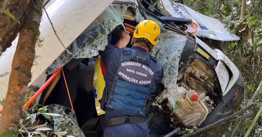 Relatório do acidente em que carro tomba em Brusque é divulgado pelo Corpo de Bombeiros