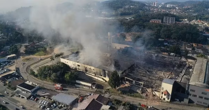 FOTOS – Veja imagens desta manhã de sexta-feira do incêndio na fábrica da Mormaii em Blumenau 08/07/2022 • Redação O Município