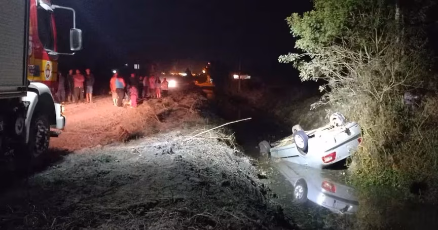 Carro com criança de 6 anos e outros dois capota em riacho no Norte de SC 11/07/2022 • Redação O Município