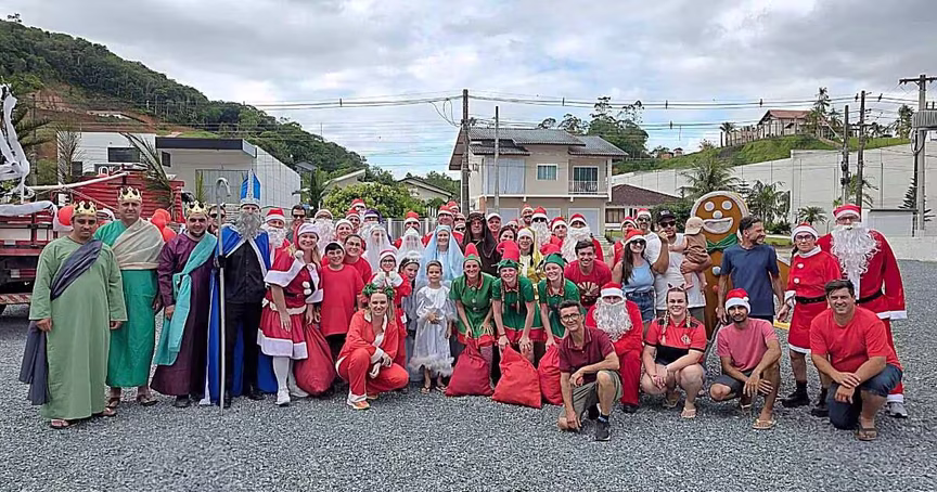 Natal aproxima creche e Casa Atlântica em visita com 300 crianças em Brusque