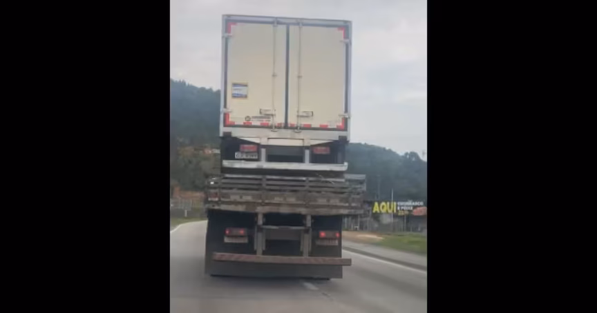 VÍDEO – Caminhão é flagrado transportando outro sem proteção na BR-101