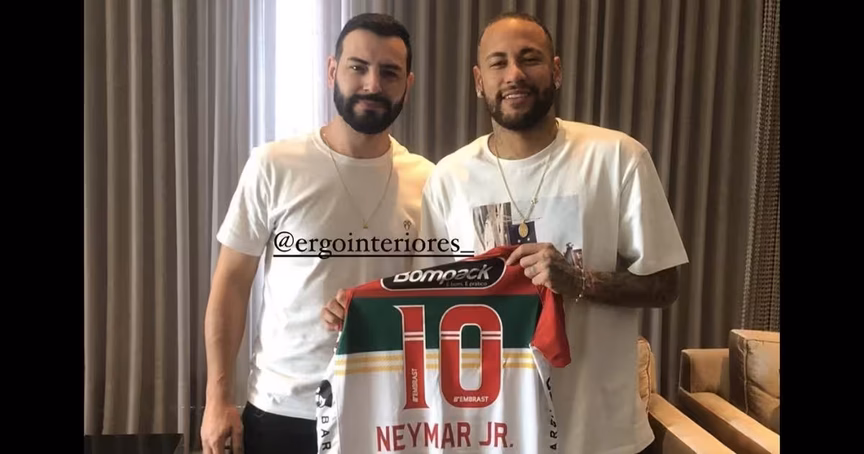 Neymar posa com camisa do Brusque em novo apartamento de Itapema