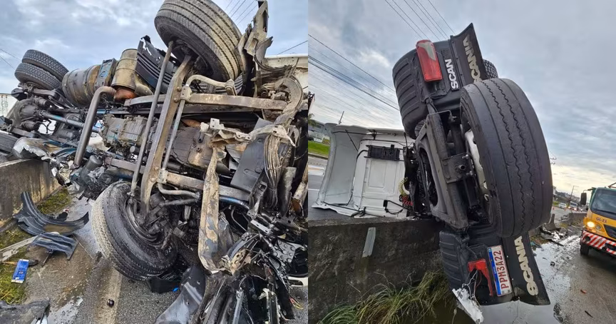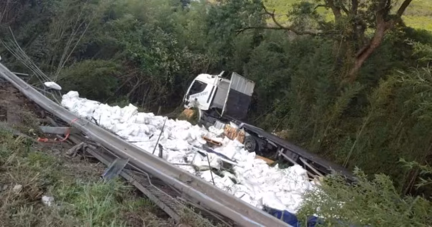 Caminhão cai em barranco após bater em carro na BR-101, no Morro dos Cavalos 29/04/2024 • Redação O Município