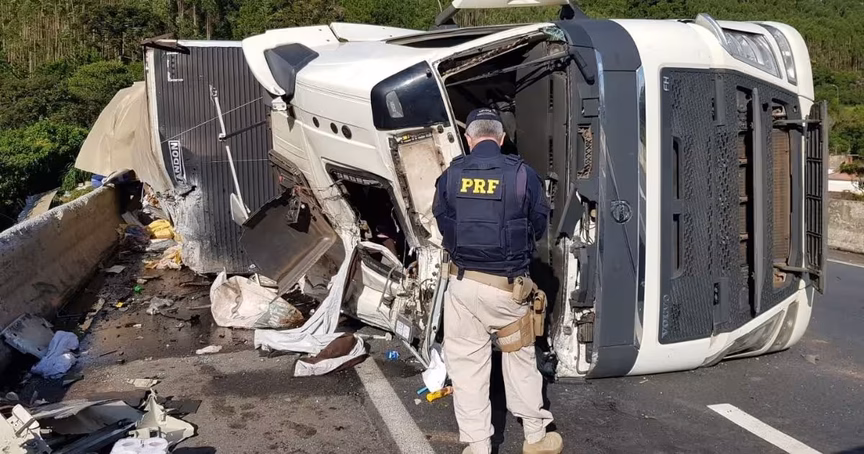 Caminhão com placas de Brusque tomba no Paraná e passageira morre