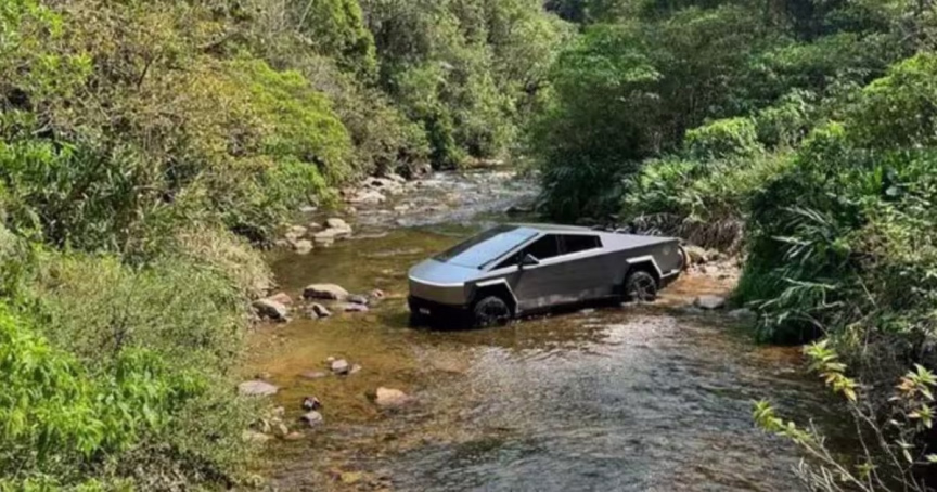 Empresário viraliza ao publicar fotos de carro Tesla Cybertruck durante trilha em Blumenau