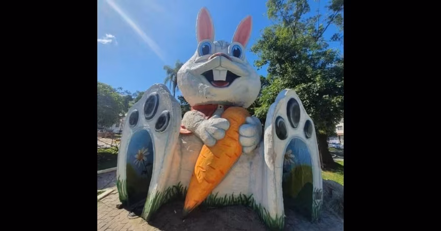 Escultura de coelho gigante abre para visitação nesta sexta-feira em Nova Trento