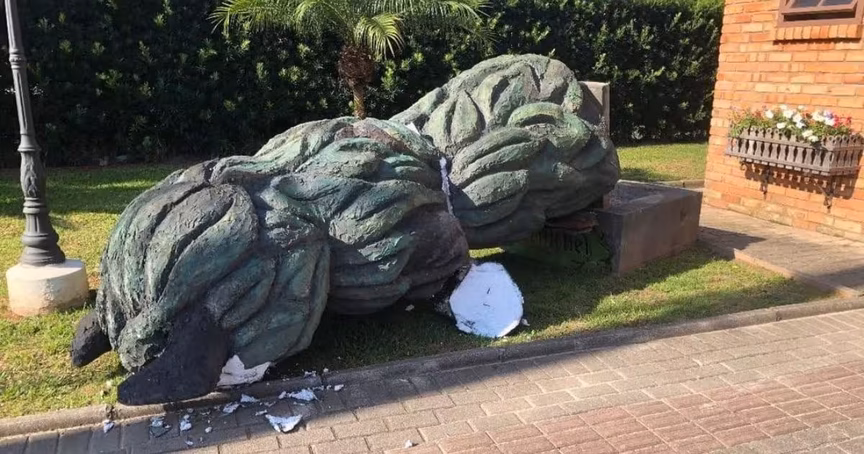 Escultura de Pelznickel é derrubada em ato de vandalismo em Guabiruba; sociedade repudia 24/02/2024 • Thiago Facchini