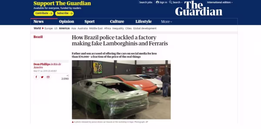 Portais internacionais noticiam caso de fábrica clandestina de veículos de luxo de Itajaí 18/07/2019 • Redação O Município