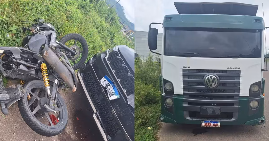 Motociclista fica gravemente ferido em acidente com carro e caminhão na rodovia Antônio Heil 24/01/2025 • Vitor Souza