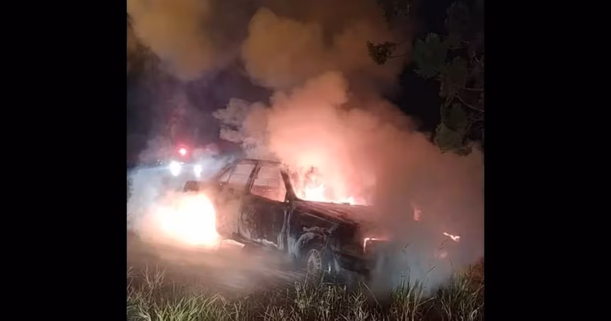 Veículo estacionado em terreno é destruído após pegar fogo em Brusque 10/05/2022 • Redação O Município