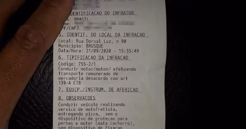 Motoboy entrega lanche no Batalhão de Polícia Militar de Brusque e é multado por policial 22/09/2020 • Redação O Município