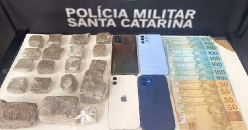Dois jovens são conduzidos pela PM após denúncia de tráfico de drogas na Antônio Heil, em Brusque 10/05/2024 • João Henrique Krieger