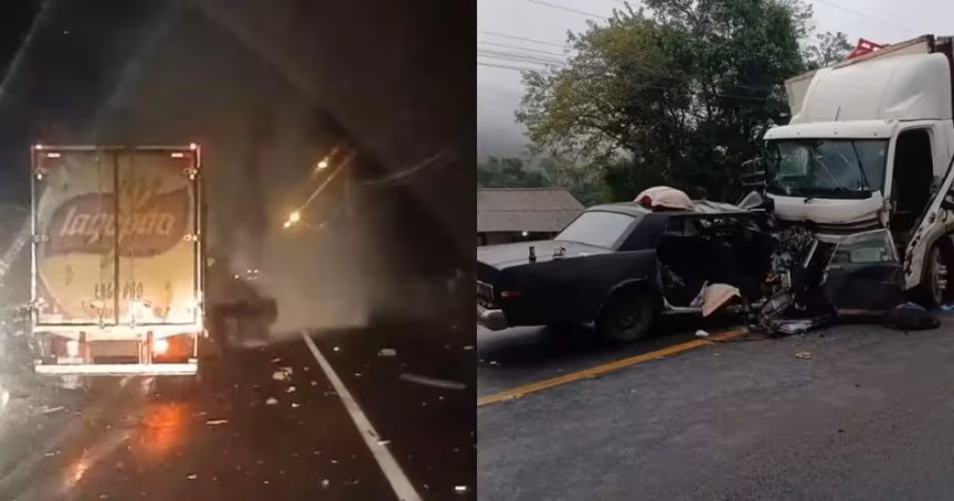 VÍDEO – Acidente entre van e carretas mata uma pessoa e deixa mais de dez feridos em rodovia que liga Paraná e SC 12/11/2025 • Vitor Souza