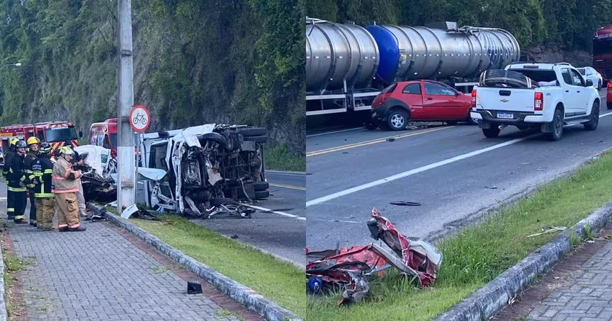 Personal trainer morre após grave acidente entre três veículos na BR-101, em Palhoça 19/08/2025 • Vitor Souza