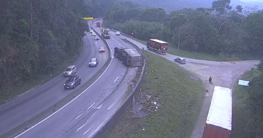 Carreta transportando sucata tomba na BR-101, no Morro dos Cavalos 07/08/2024 • João Henrique Krieger