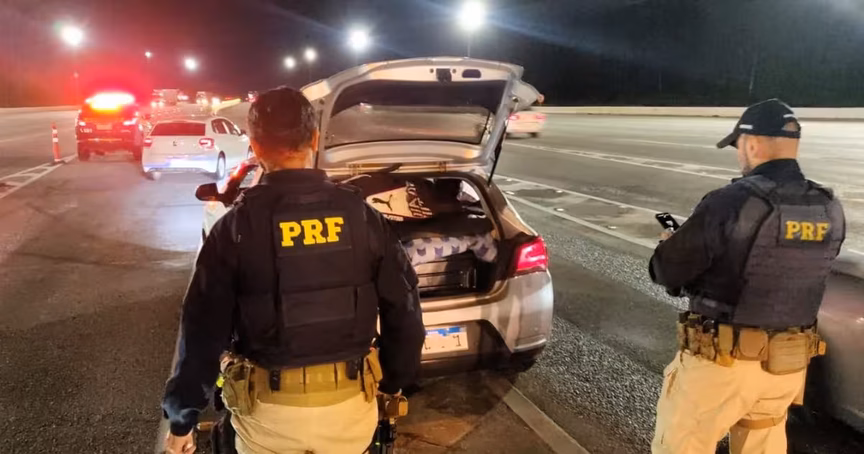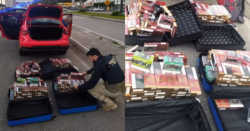 Cigarros contrabandeados do Paraguai são apreendidos em carro de aplicativo na BR-101, em Itapema 21/10/2024 • Thiago Facchini