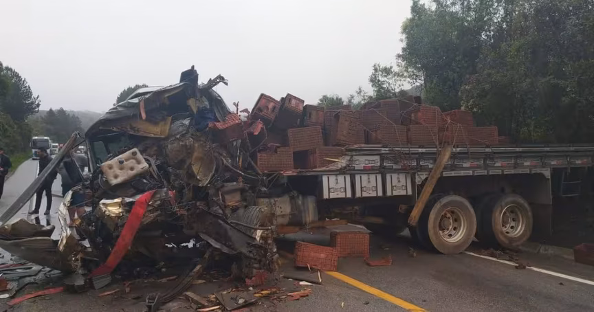 VÍDEO – Colisão entre caminhão e carreta interdita trecho da BR-282, em Rancho Queimado 15/10/2024 • João Henrique Krieger