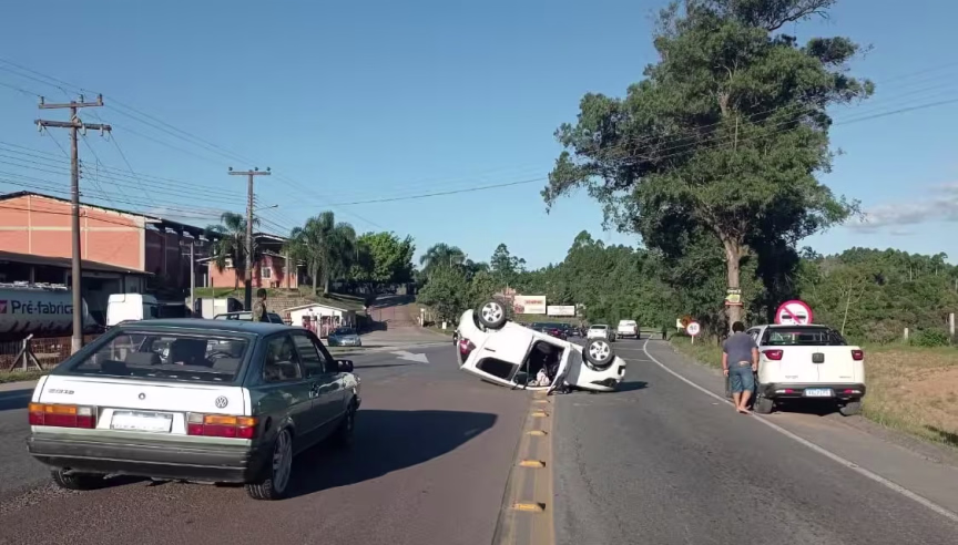 Carro sai da pista e capota após ter a frente cortada por outro veículo na BR-470, em Gaspar 21/11/2021 • Redação O Município