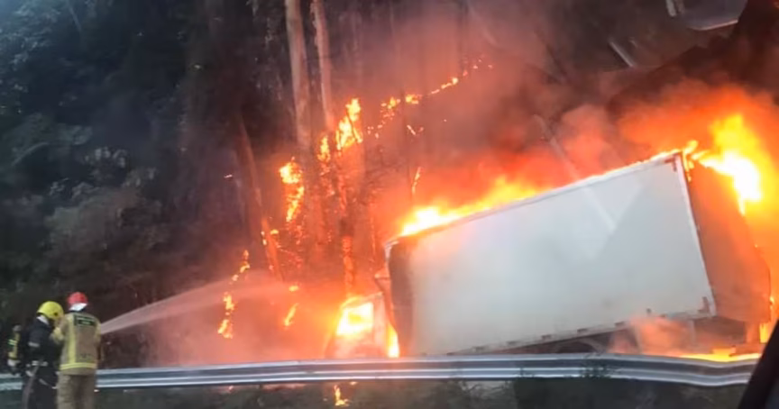 VÍDEO – Carreta pega fogo e chamas se espalham na mata na BR-470, no Alto Vale 16/11/2021 • Redação O Município