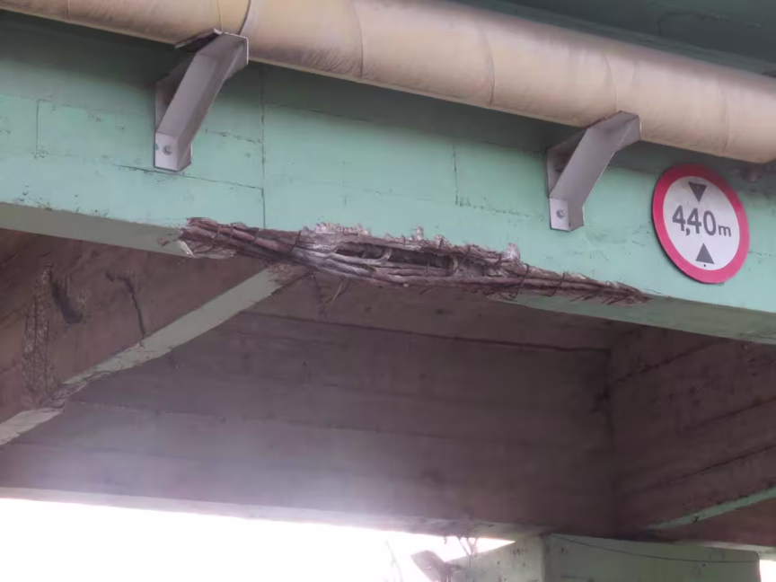 Pedaços de concreto da ponte Arthur Schlösser caem sobre a avenida Beira Rio