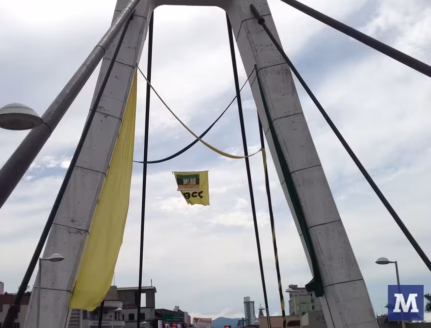Grupo colore ponte estaiada de verde e amarelo em apoio ao impeachment de Dilma 15/04/2016 • Redação O Município
