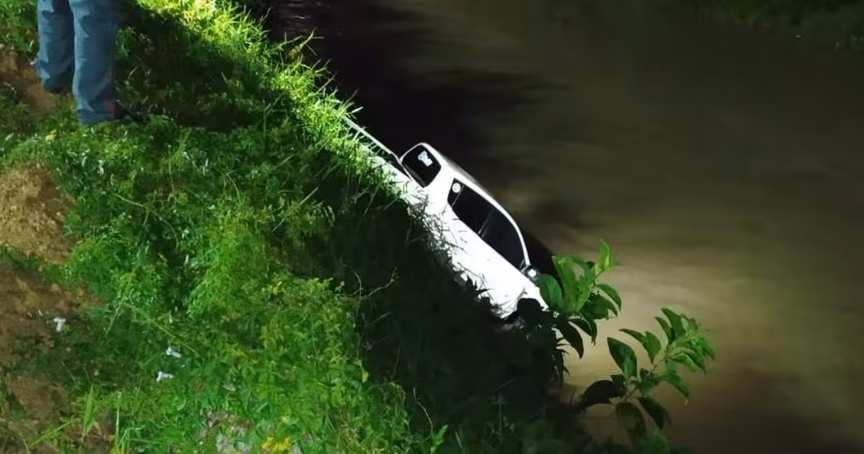 Carro cai no rio Itajaí-Mirim e fica submerso; bombeiros farão buscas por possíveis vítimas