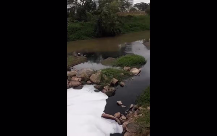 VÍDEO: Morador flagra espuma branca e manchas escuras no rio Itajaí-Mirim, no Jardim Maluche