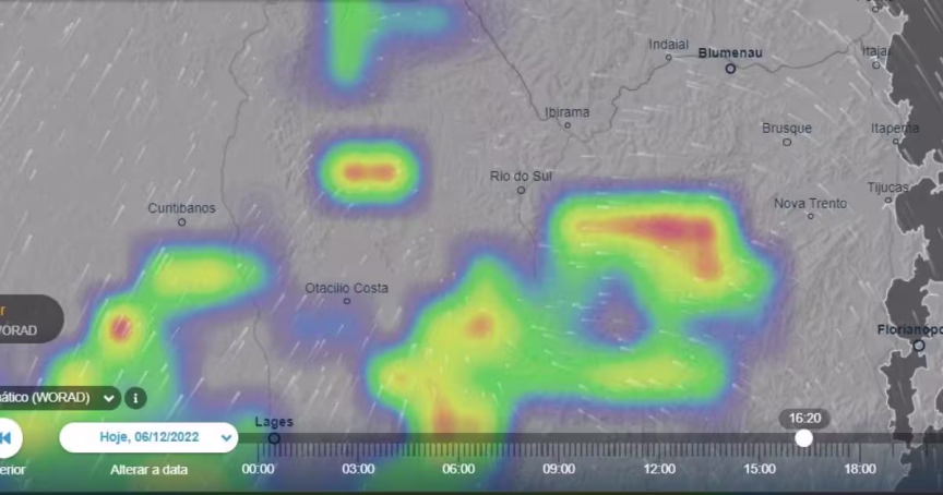 Radar mostra a evolução do temporal que deixou cidades do Vale do Itajaí submersas