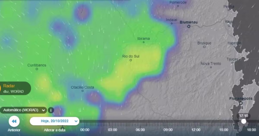 Radar mostra a chuva chegando ao Vale do Itajaí nesta sexta-feira; confira a previsão