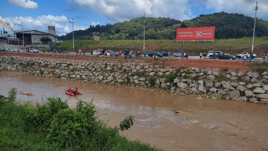 Carro cai no rio Itajaí-Mirim e bombeiros farão buscas por possíveis vítimas em Brusque