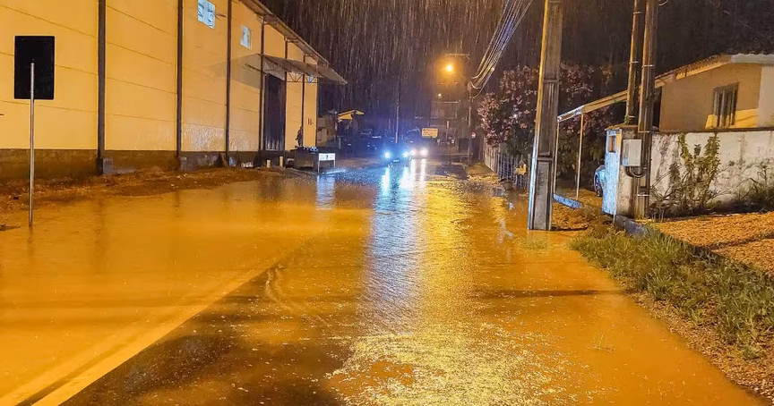 Chuva forte da noite desta segunda-feira acumula altos volumes e causa alagamentos em Brusque