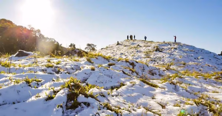 Frio: o entorno das nascentes do rio Itajaí-Mirim tomado pela geada